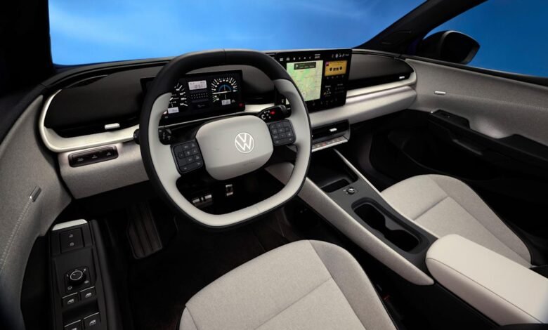 “We have created an interior that feels like a friend from the very first contact,” Volkswagen’s chief designer, Andreas Mindt, said in a press release. “Clear physical buttons provide stability and trust, warm materials make it appealing, and charming details such as the new retro views of the instruments show the typical Volkswagen wink.”