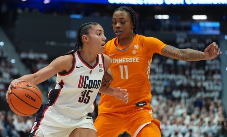 Feb 1, 2026; Hartford, Connecticut, USA; UConn Huskies guard Azzi Fudd (35) drives the ball against Tennessee Volunteers forward Zee Spearman (11) in the first half at PeoplesBank Arena. Mandatory Credit: David Butler II-Imagn Images As the nation’s lone undefeated team, UConn remained the consensus No. 1 in Monday’s Associated Press Top 25 women’s college basketball poll.