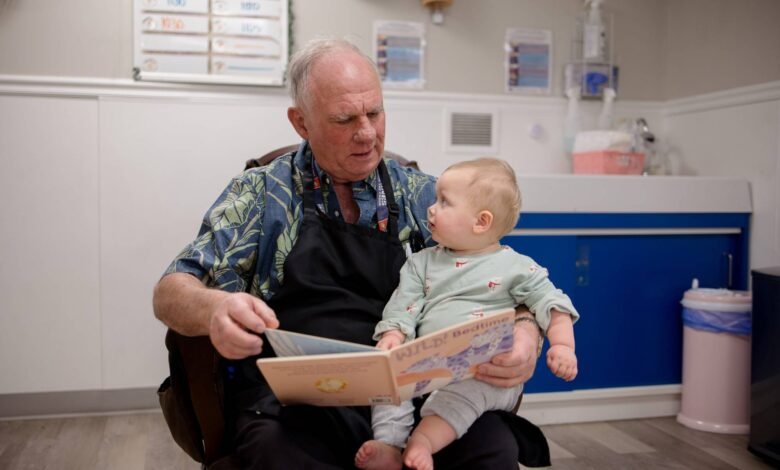Kit Karbler, 72, is a glass artist whose work is displayed at the Denver Art Museum. “If I hadn’t found this, I can’t imagine what I’d be doing,” he said about being a substitute child care worker at an early learning center based at Temple Emanuel in Denver. Karbler works 20 hours a week, more if they need him. “What would I be doing that would give me this emotional return?”