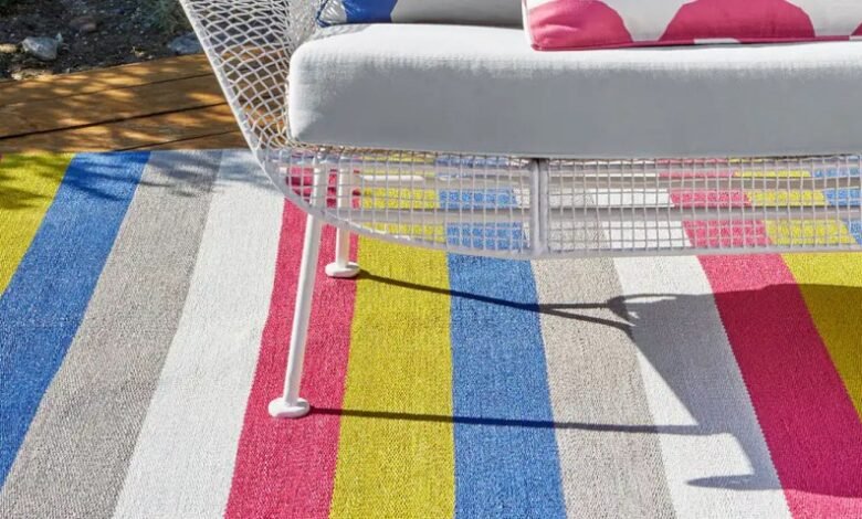 two striped outdoor rugs