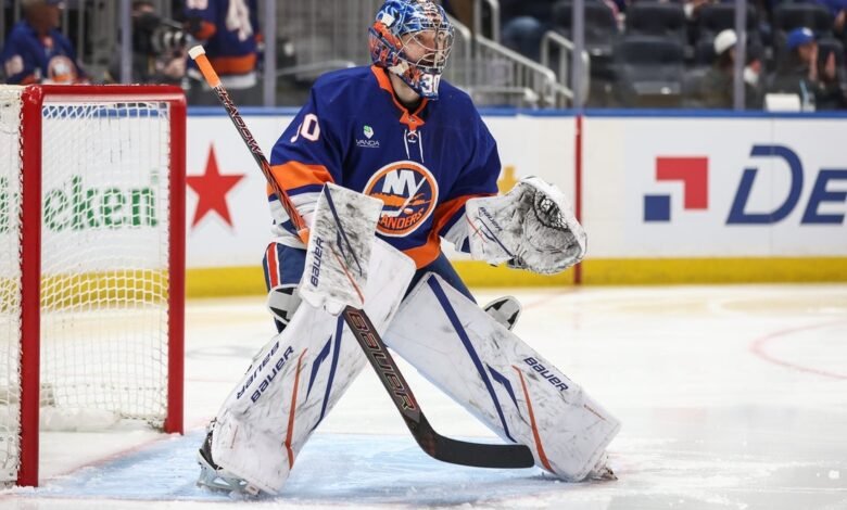 NHL: Toronto Maple Leafs at New York IslandersApr 9, 2026; Elmont, New York, USA; New York Islanders goaltender Ilya Sorokin (30) stands in the goal crease during the first period against the Toronto Maple Leafs at UBS Arena. Mandatory Credit: Wendell Cruz-Imagn Images